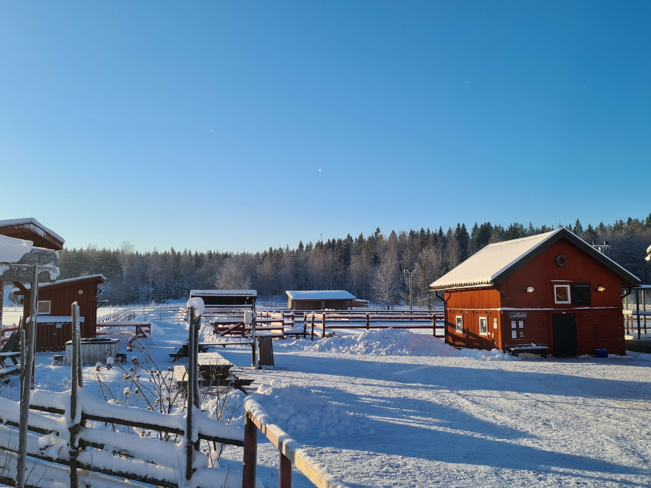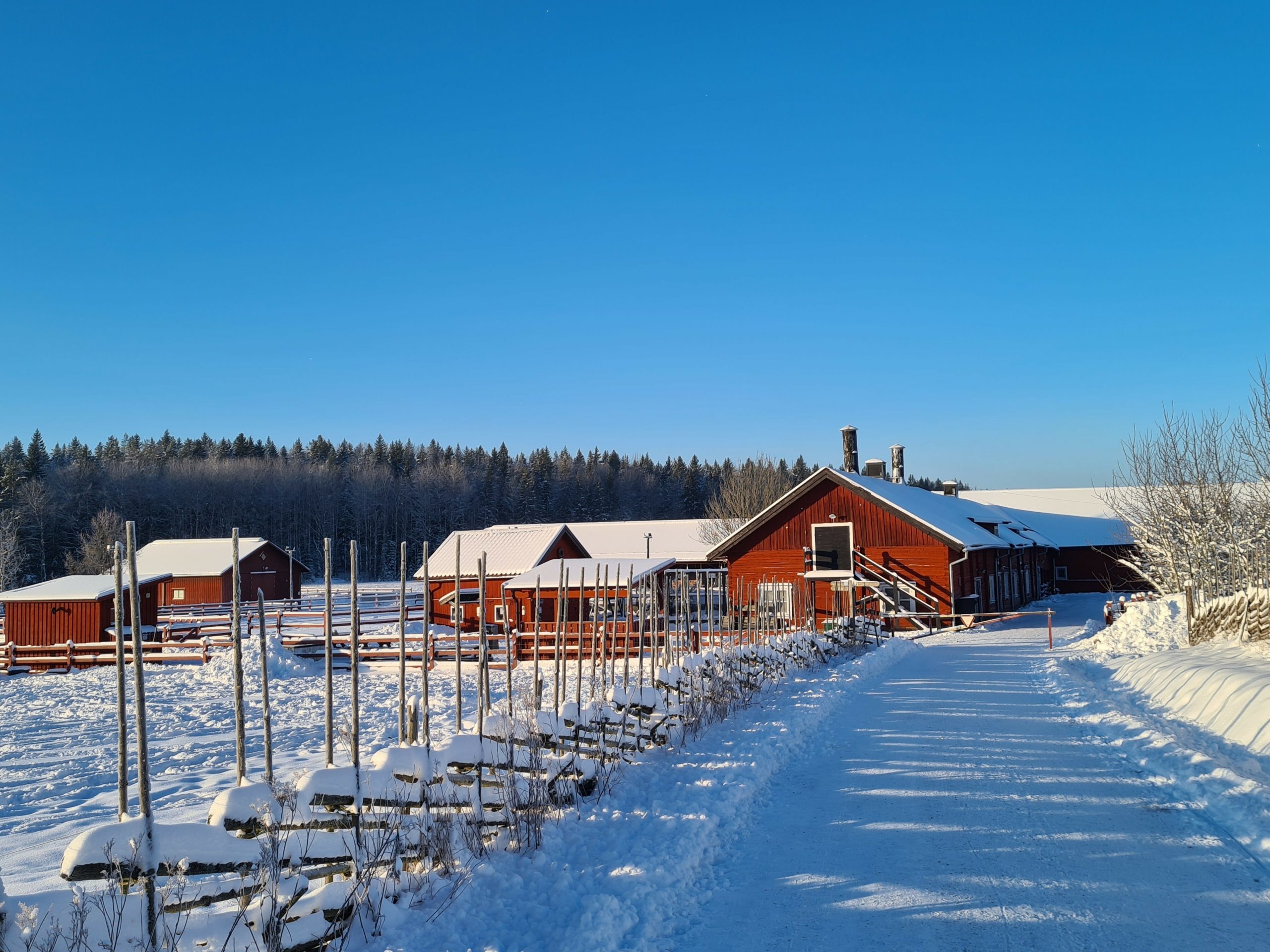 2 km gångväg eller skidspår till Tyresta by en riktig lantgård med djur, ridning, kafé och landhandel.